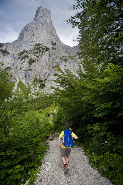 Davallada del refugi Stripsenjochhaus, un dels més antics dels Alps, cap a Kirchdorf in Tirol, amb una agulla del Wilder Kaiser al fons.
